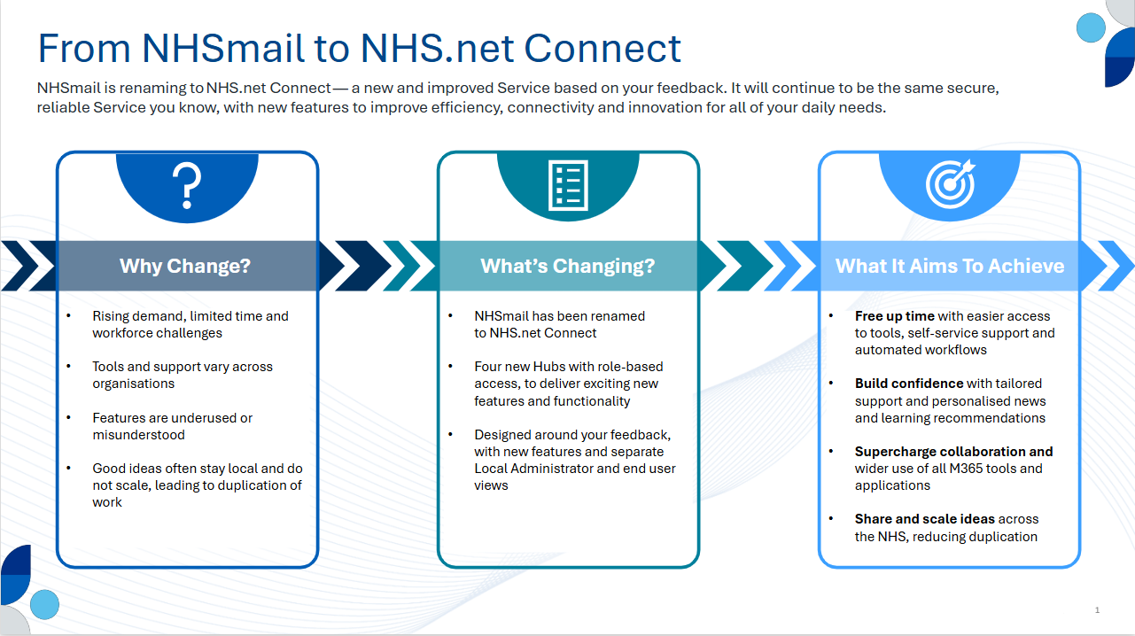 Over the years, NHSmail has been a key tool for NHS communication and collaboration, supporting patient care with numerous functions beyond just email. The term ‘NHSmail’ no longer fully represents its complete capabilities which is why NHSmail is now evolving into NHS.net Connect.