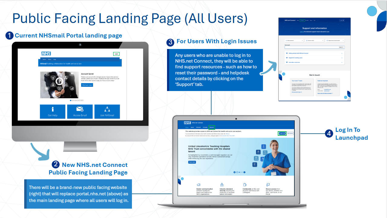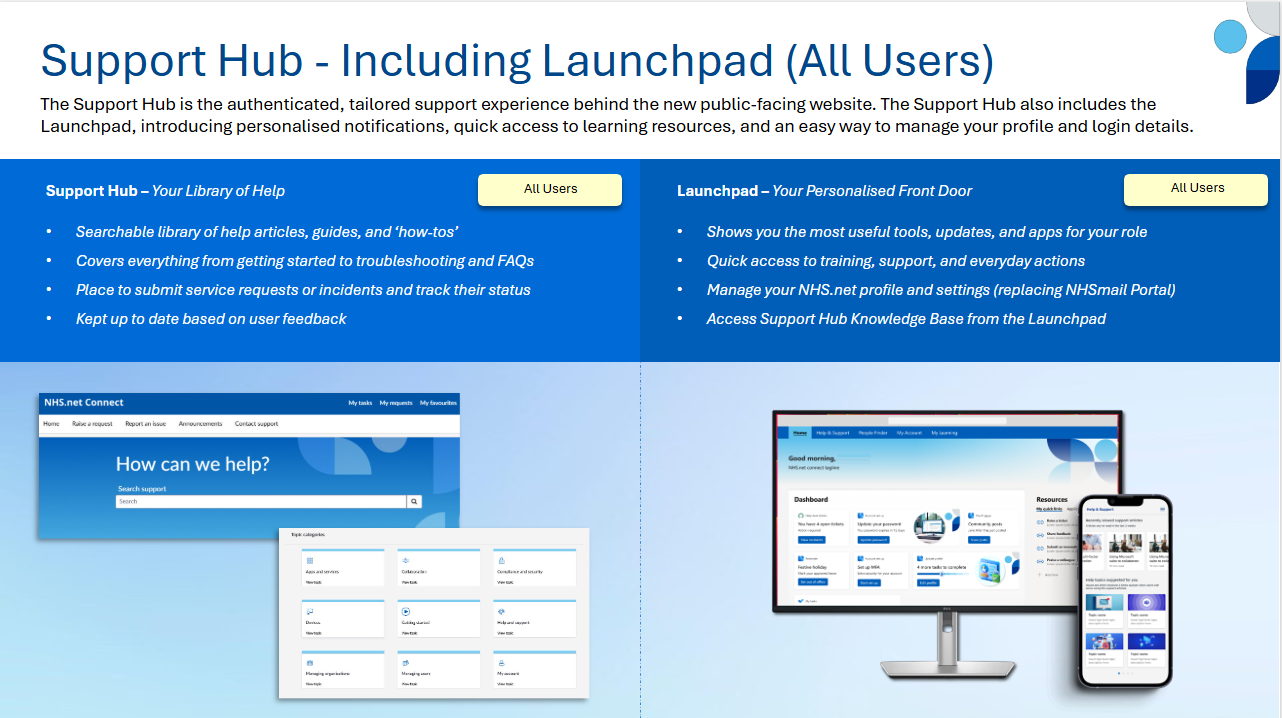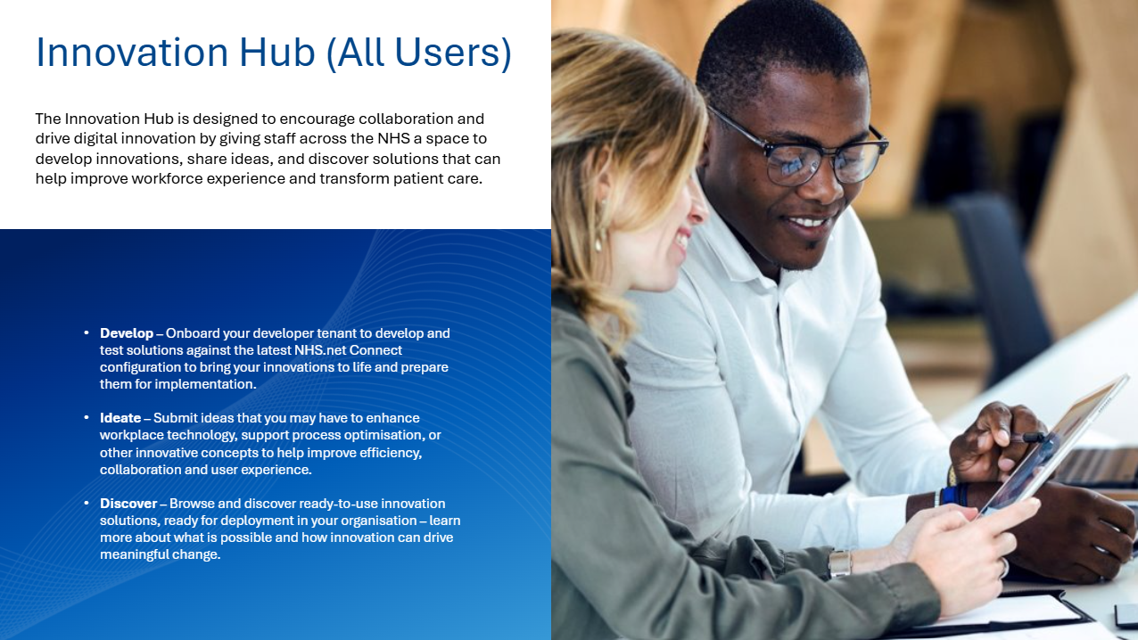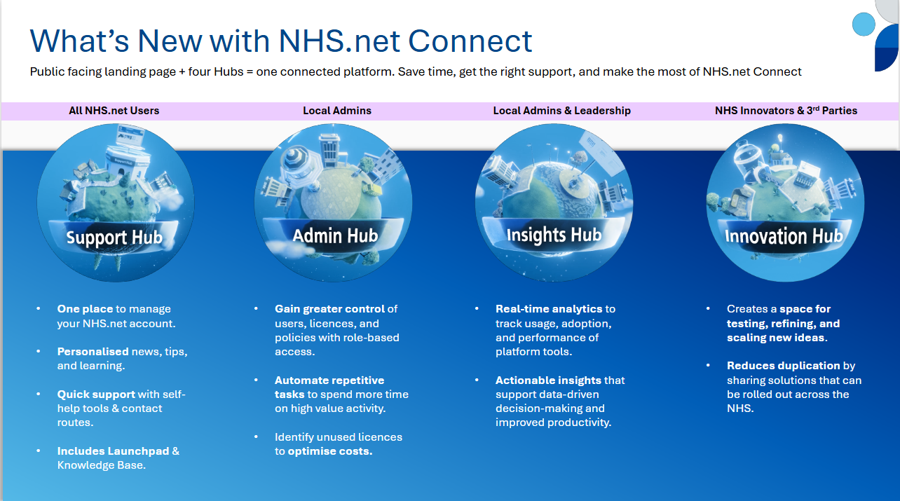 Alongside core services, NHS.net Connect introduces a brand-new public facing landing page and four new, interconnected Hubs to improve efficiency, connectivity, and innovation.